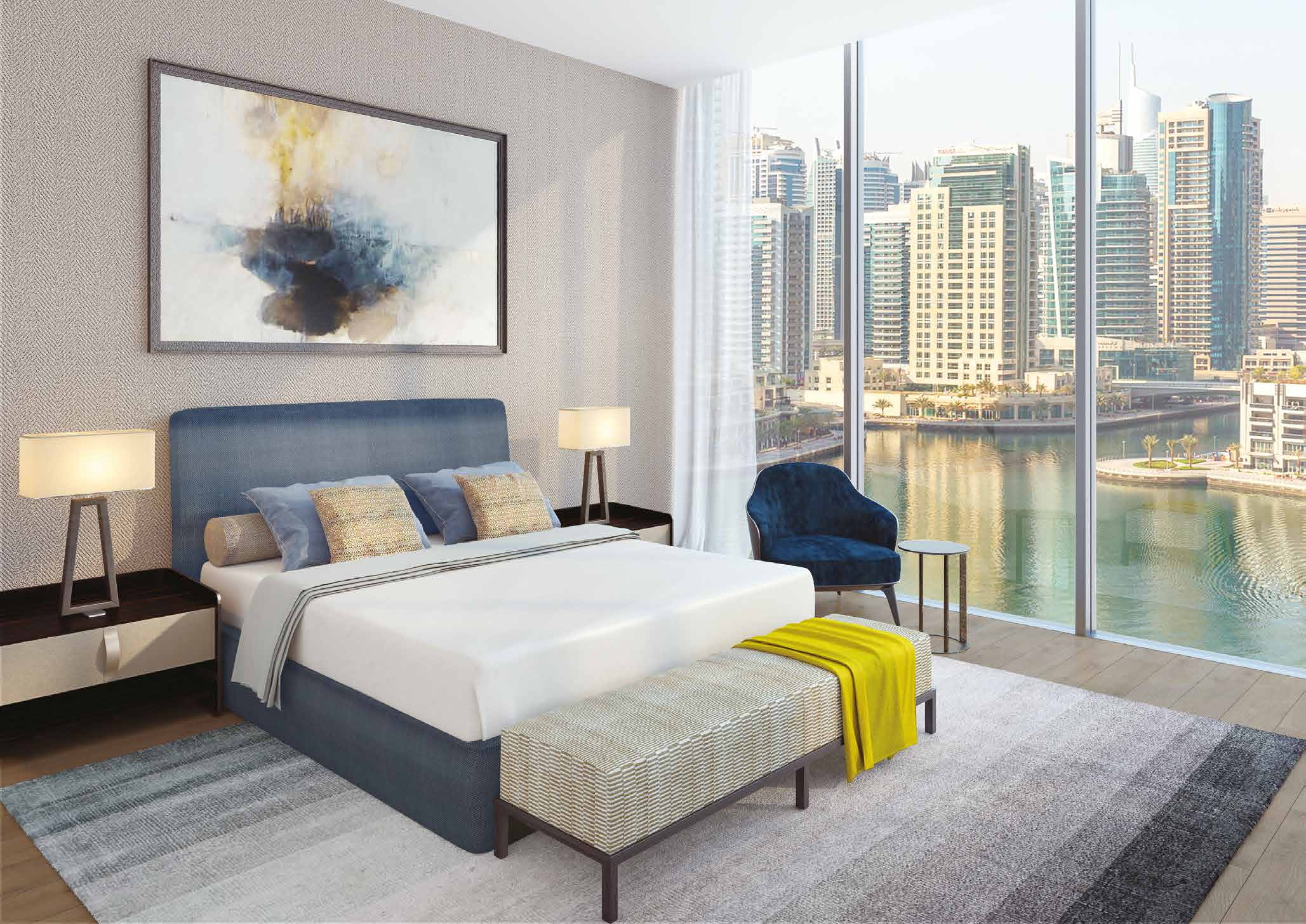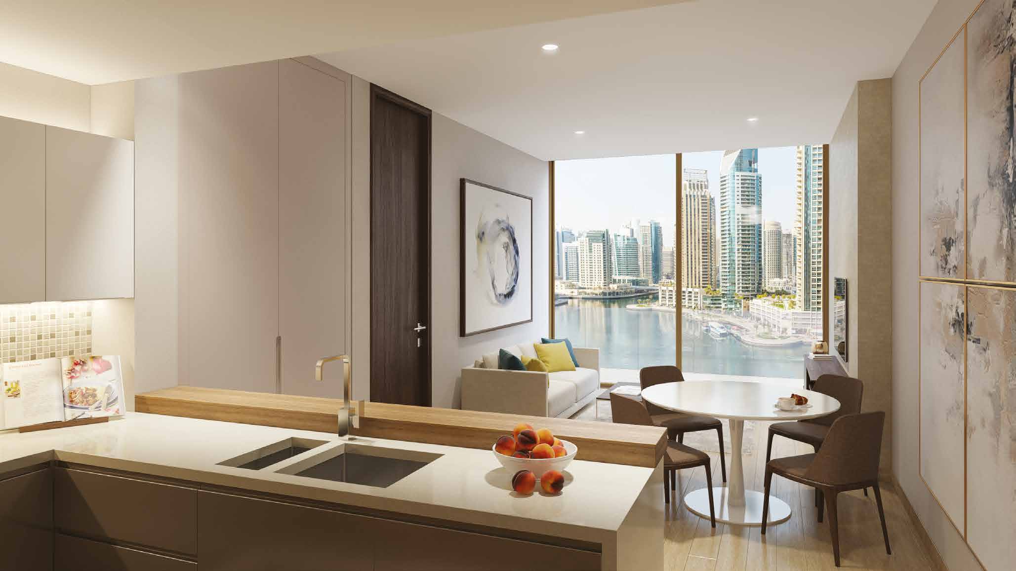 The picture perfect position affords stunning views over the emerald bay with its array of yachts and a palm-lined promenade set against the beautiful backdrop of the majestic Marina skyline.
